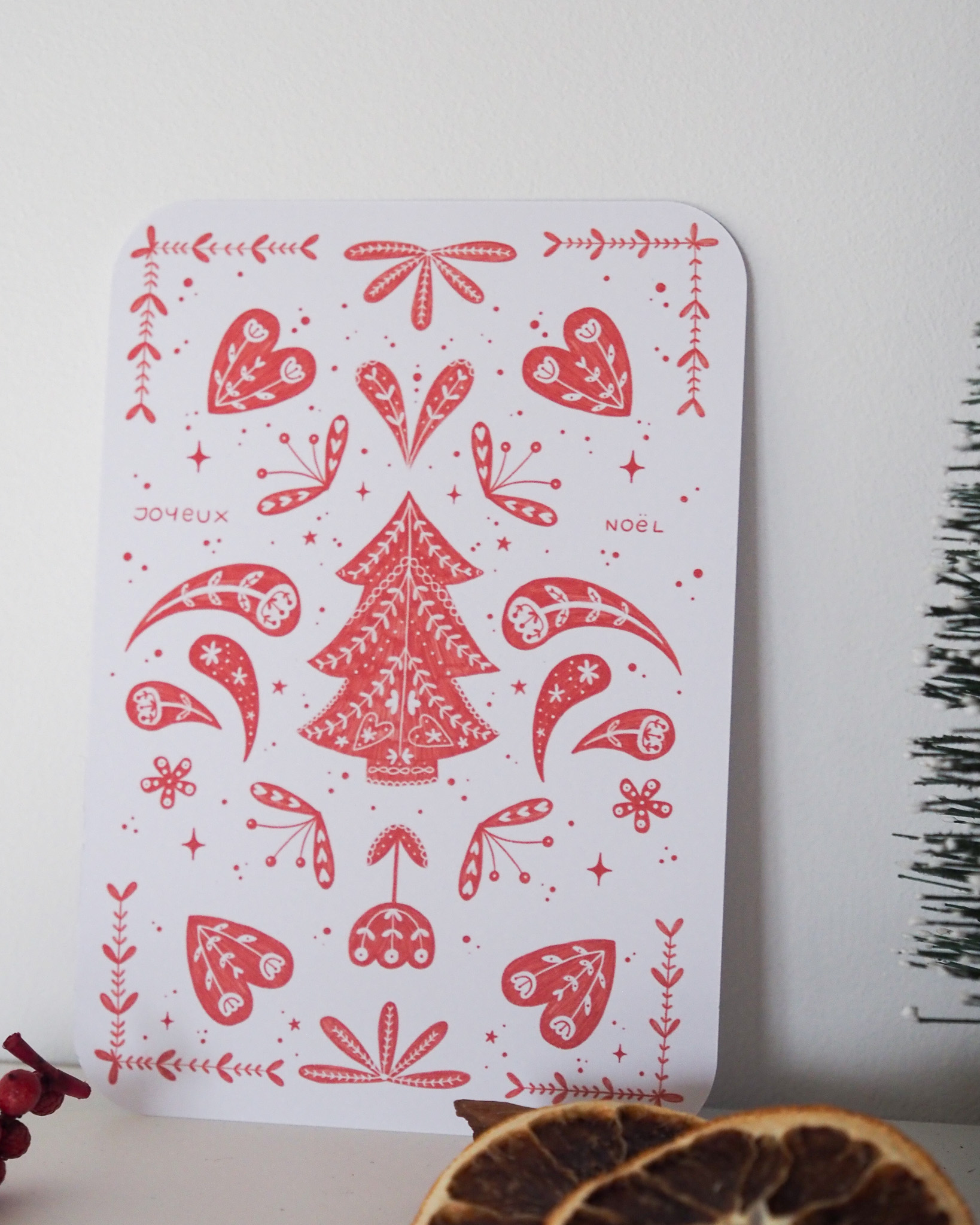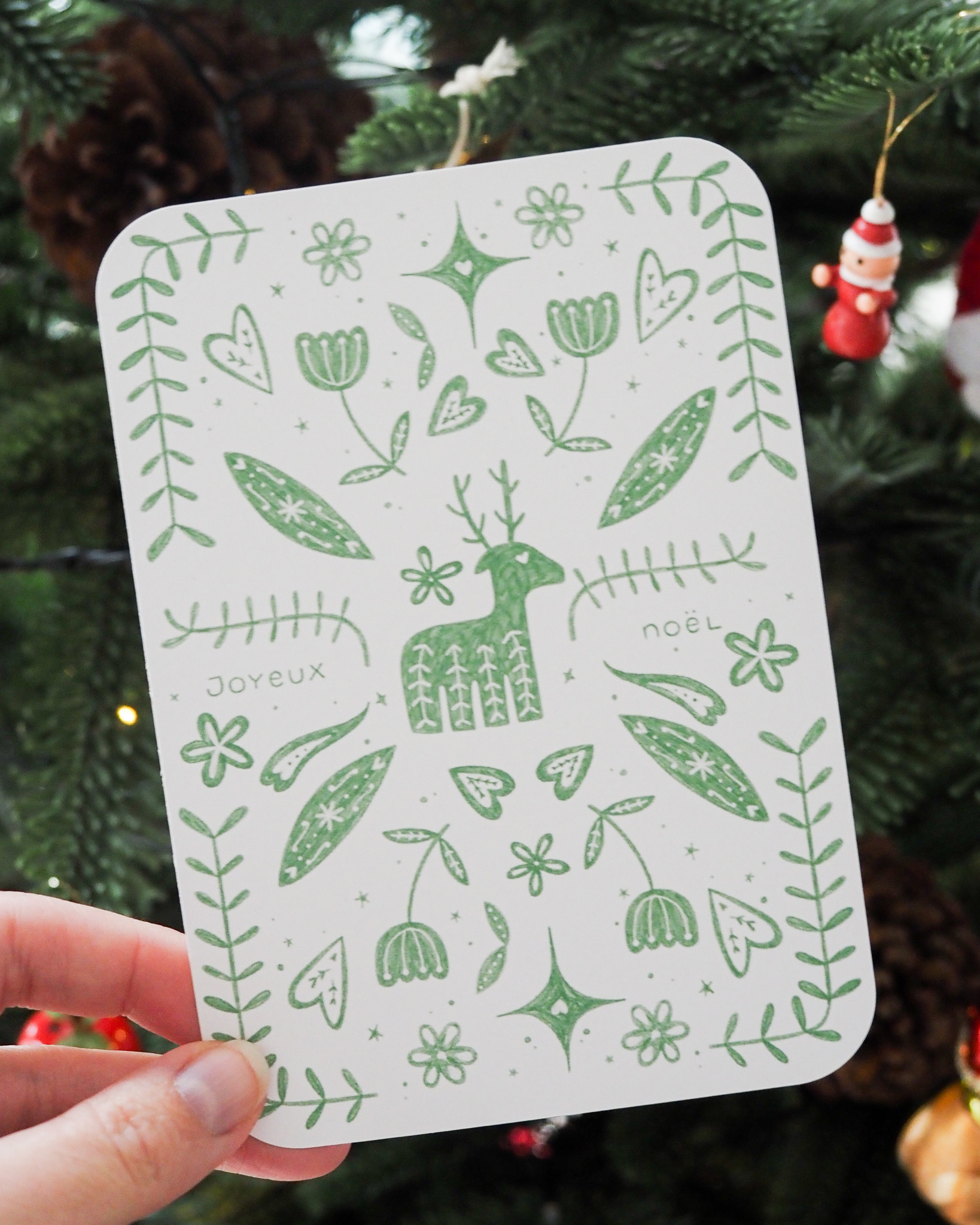 Chaque dessin est imaginé et réalisé par mes soins, puis imprimé localement sur papier texturé PEFC.